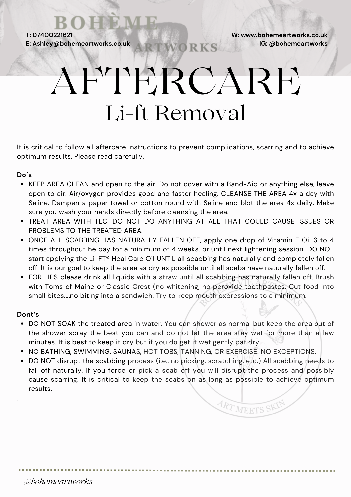 At Boheme Artworks, we pride ourselves on our skills, quality and experience that we bring to our clients, and we believe the quality of our work and clients results truly reflect that. Ashley, your Artist will be carrying out your treatment. Ashley has performed hundreds of treatments and is well known for creating super natural and hyper realistic results. Semi Permanent Make up Treatments are intended to enhance your natural features, using the highest quality of pigments / ink and tools for optimal, long lasting healed results.