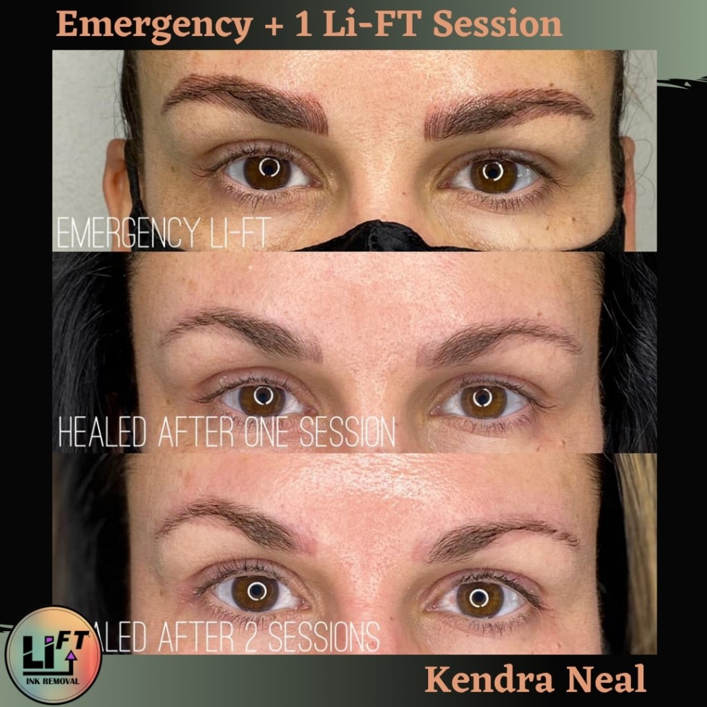 How many sessions it will take depends on many factors; How deep was the pigment implanted? If the pigment was implanted too deep then more sessions may be needed. Is the color dark and solid? If so, this may require more sessions. Does the pigment contain titanium dioxide? If so, this may require more sessions. Is the skin thin or thick, oily or dry in the area of the unwanted pigment? Pigment tends to remove more quickly with skin that is thinner and drier. Does all of the pigment need to removed or does only a portion or percentage of the pigment need to be lightened or removed? In many cases, only a percentage or portion of the pigment needs to be removed in order to correct the shape or correct the color. How the client cares for the removal procedure during the healing process can also play a role in the results therefore how many sessions it may take.