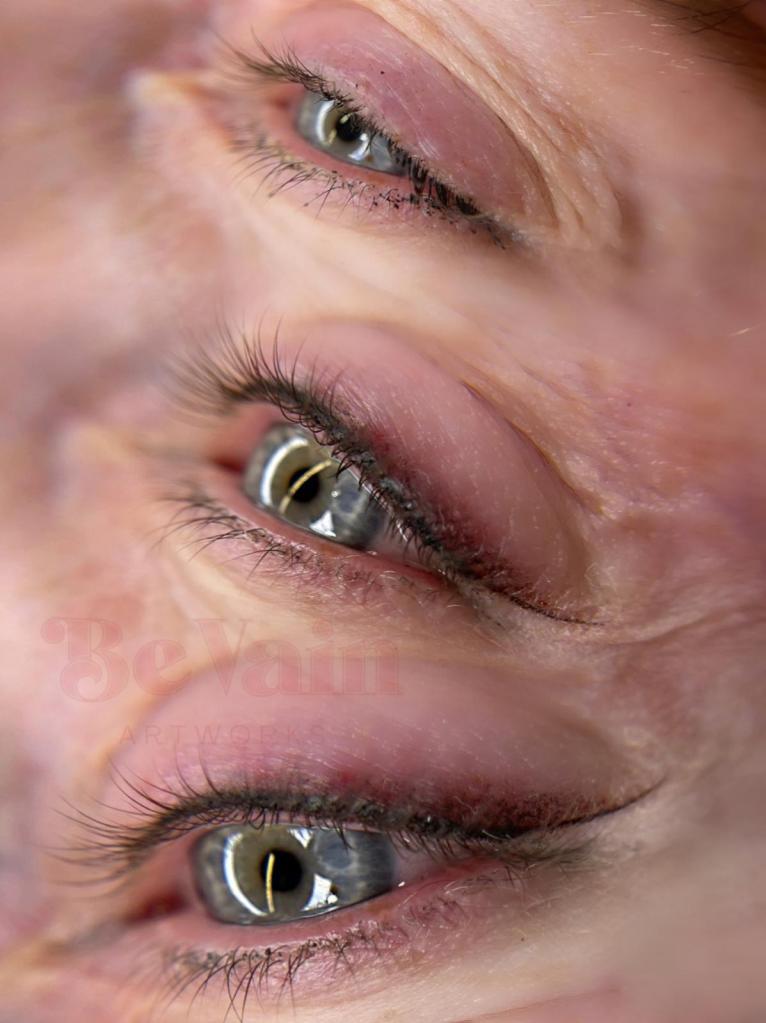 Shaded Eyeliner also known as Smokey Eyeliner technique. During this procedure, Ashley will add colour to the lash line and also create uplifting a smoky wing, it will make eyelashes appear darker and fuller, your eyes more awaken and open. This treatment is getting extremely popular, this allows clients to wake up, wash their face and go without doing very much for their make up routine. Some people don’t feel the need to wear mascara after having this treatment done.